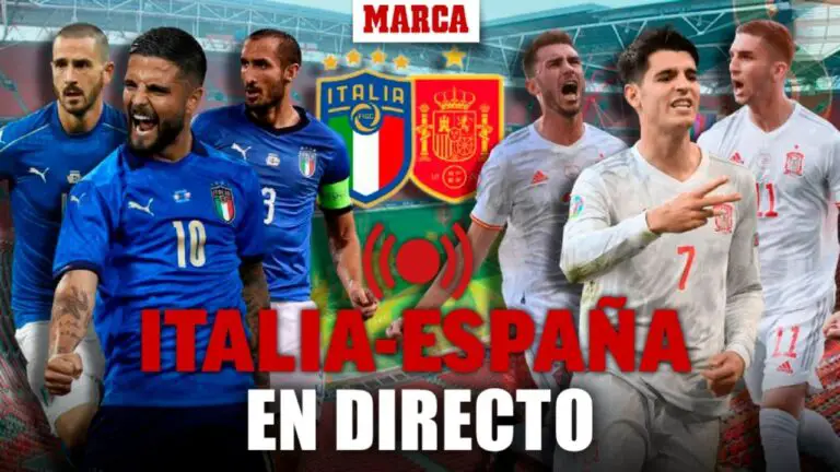 Eurocopa 2020Italia vs España: Fecha, hora y canal de televisión en Estados Unidos para las semifinales de la Eurocopa 2020 en WembleyItalia y España se enfrentan hoy, 6 de julio, en el estadio de Wembley en las semifinales de la Eurocopa 2020. Descubre aquí cuándo se jugará el partido y cómo verlo en Estados Unidos.Por Martina AlchevaJulio 06, 2021 06:47PM EDTJulio 06, 2021 06:47PM EDTGianluigi Donnarumma de Italia (izquierda) y Mikel Oyarzabal de España (derecha). (Getty)Por Martina AlchevaItalia se enfrenta a España en el estadio de Wembley, en Londres, hoy, 6 de julio de 2021, a las 15:00 horas (ET) en la fase eliminatoria del Campeonato de Europa de la UEFA 2020. Será el décimo enfrentamiento entre estas dos selecciones en la Eurocopa, con el equipo italiano ganando cuatro de esos partidos y el equipo español sólo uno. El resto de los partidos terminaron en empate. Aquí encontrarás cuándo se jugará este partido de fútbol decisivo de las semifinales y cómo verlo en Estados Unidos.