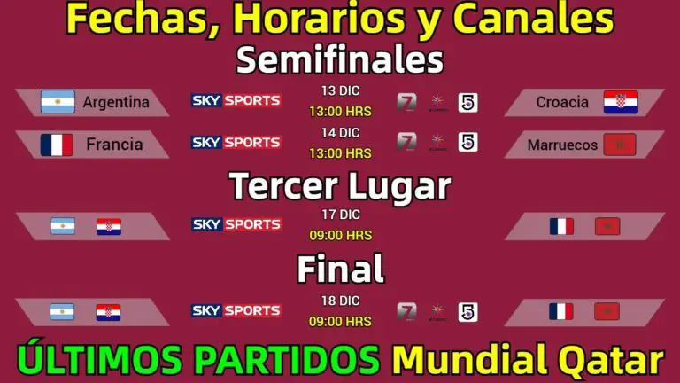 La Copa Mundial de Fútbol de la FIFA 2022 se está jugando en Qatar y continuará hasta el 18 de diciembre de 2022. En la Copa Mundial de la FIFA 2022, 32 equipos de fútbol participan para competir entre sí, los equipos se dividen en ocho grupos. Un total de 64 partidos se van a jugar en 29 días desde el 20 de noviembre hasta el 18 de diciembre de 2022 para decidir los ganadores de la Copa Mundial de la FIFA Qatar 2022. De los 32 equipos, 8 se han clasificado para cuartos de final. En este artículo, proporcionamos el calendario de la Copa Mundial de la FIFA 2022, las fechas de los partidos, los horarios y los equipos clasificados para semifinales.